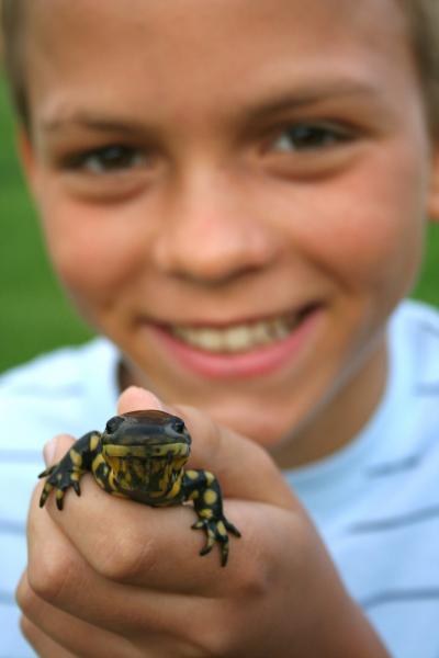 Boy holding a salamander
